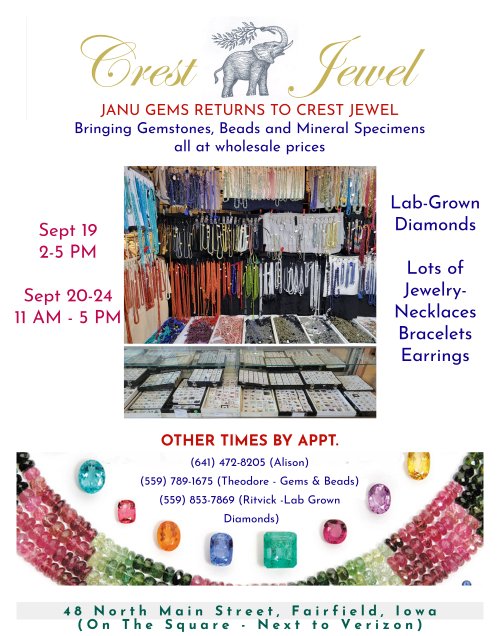 Gems, Beads, and Mineral Specimens Ready Made Jewelry too!Now Through September 24th