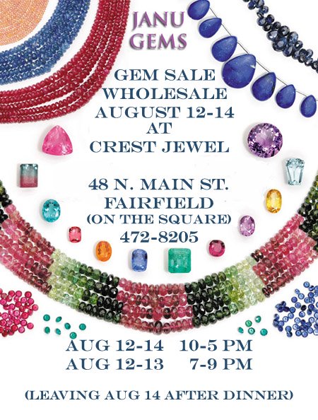 Janu's Wholesale Gems and Gemstone Beads at Crest Jewel Starting Tomorrow August 11, 2016 |